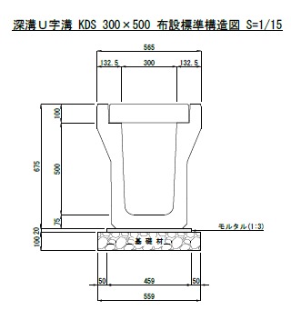 [C-03-15] 深溝U字溝[KDS・KDR]製品断面図(参考資料) |