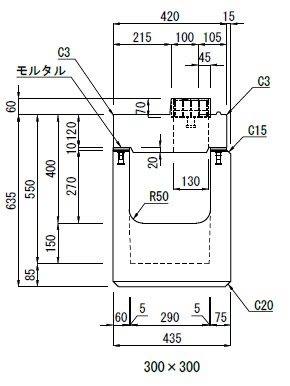 落蓋式側溝・蓋 オリジナル側溝(落蓋式) |  | ![]() | 現場にて据付後に底版にインバートコンクリートを打設することにより、排水勾配を自由に設定できる側溝です。
